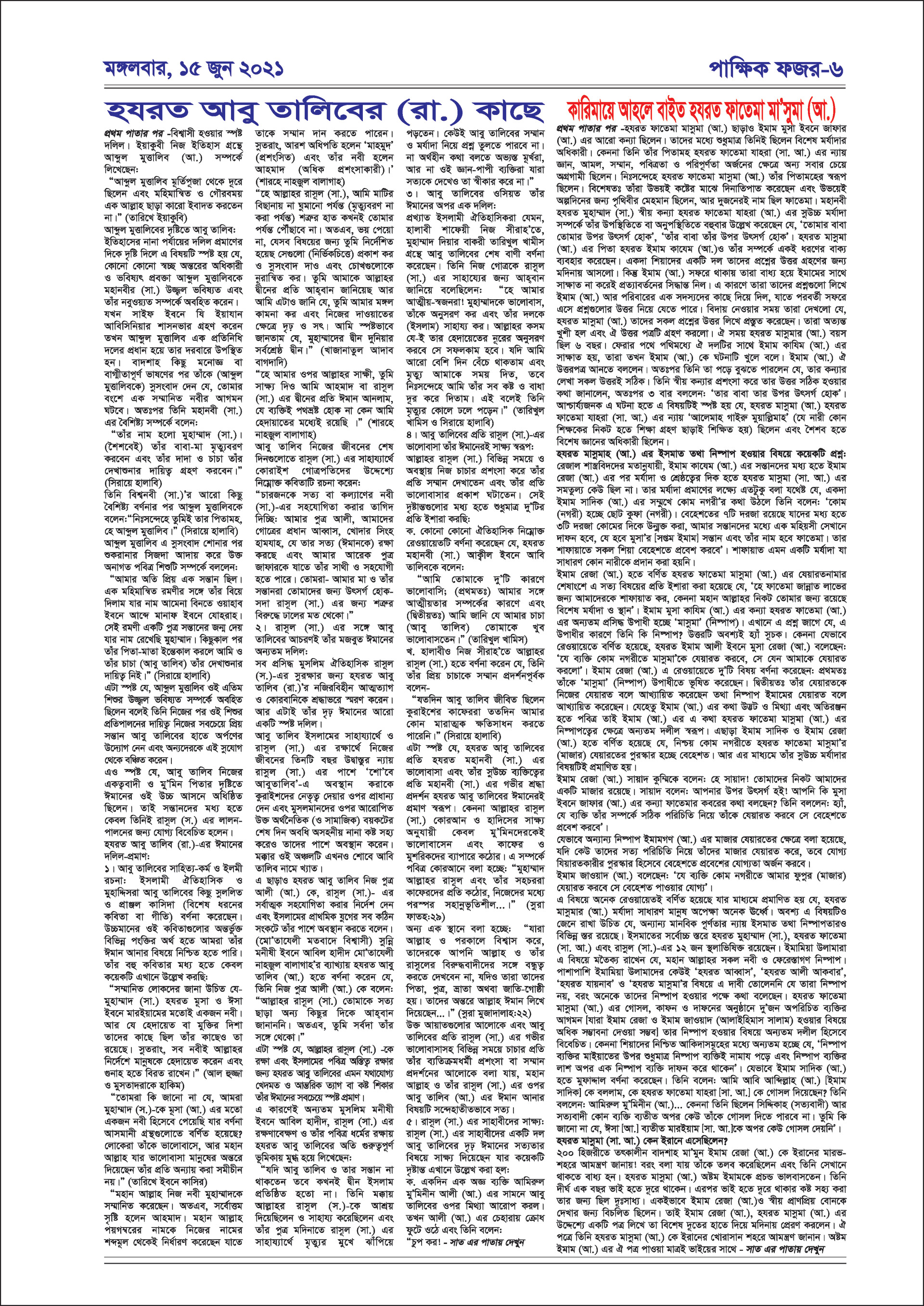 পাক্ষিক ফজর ১৫-০৬-২০২১